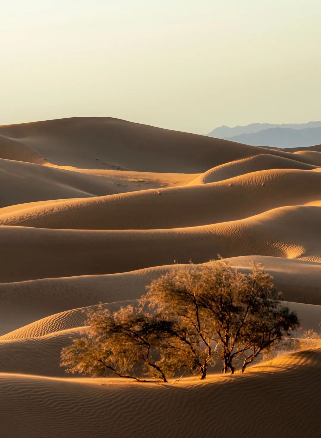 流动沙漠的沙不同于咱们常见的沙土,它非常细,非常轻。在大风天气下,地面上的沙像水一样流动,并形成典型的流动沙丘。
