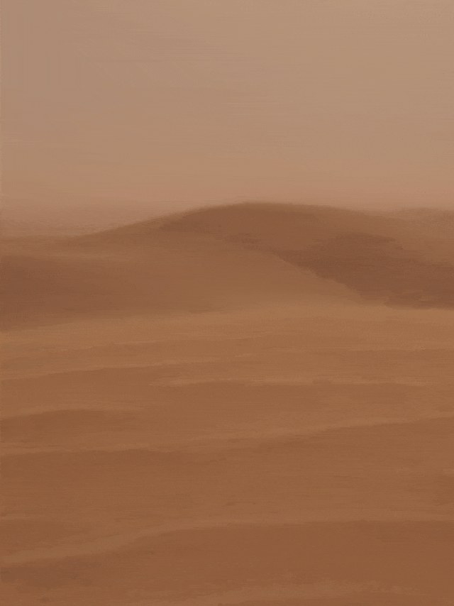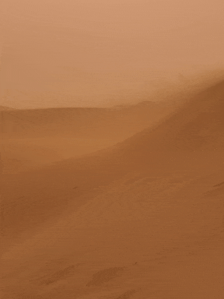 我们明明是站着不动的,却像踏入了一条穿梭通道——地面上和空气中的沙粒像水一样快速流动了起来,让我们产生了快速移动的穿越感,仿佛《星际穿越》中男主穿越虫洞,回到黄沙世界一样。