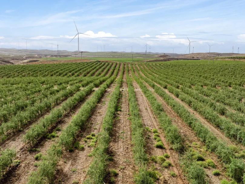 2024 年在内蒙古自治区巴彦淖尔市,种植85万棵梭梭和沙枣,为400万平方米零星沙地锁边,守护黄河“几字弯”的生态安全。